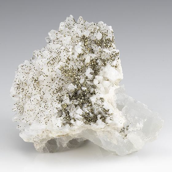 Sparkling crystals of micro pyrite across the top of the scalenohedral calcite crystals with quartz. In good condition. Classic Colorado specimen.Data last checked on 11th Aug 2021 - specimen may no longer be available