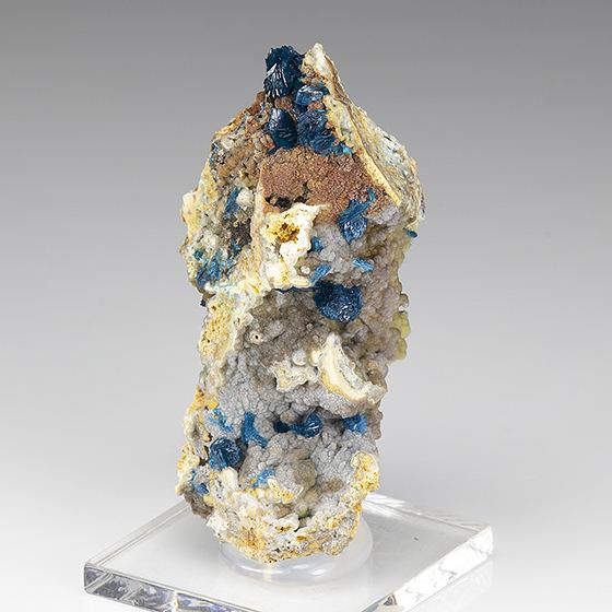 From recent finds in China, beautiful deep blue crystals to 0.4 cm in size rich throughout this matrix with hemimorphite. In very good condition with minimal micro-chipping present, this is quite good for the species.Data last checked on 11th Aug 2021 - specimen may no longer be available