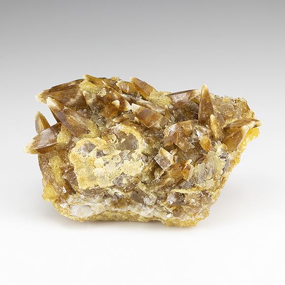 Choice crystals of barite to 1.2 cm in length across the top of this matrix with calcite. In good condition with very slight and minimal micro-chipping present.Data last checked on 11th Aug 2021 - specimen may no longer be available