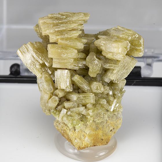 Superb thumbnail sized grouping of yellowish green barrel shaped pyromorphite crystals. In great condition. Very choice for this locality. Mounted for display in a perky box and will ship as shown.Data last checked on 11th Aug 2021 - specimen may no longer be available