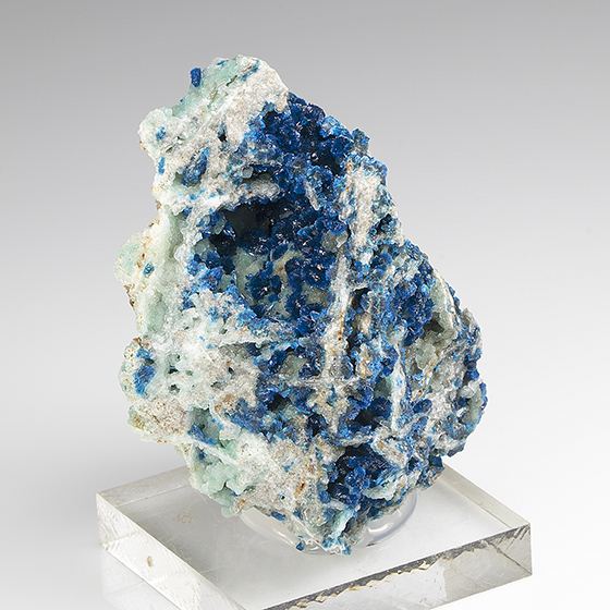 Beautiful deep blue crystallized veszelyite throughout this hemimorphite crystal matrix. Tiny and sparse micro-chipping present, overall I think in great condition. Excellent for this rare mineral. From recent finds in early 2021.Data last checked on 11th Aug 2021 - specimen may no longer be available