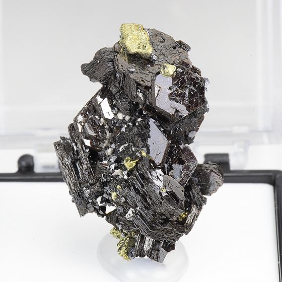 Outstanding example for the species with pseudohexagonal metallic crystals measuring to 1.0 cm in size and he stacked cluster was sphalerite and galena. The identity has been confirmed. In great condition. Mounted for display in a perky box and will ship as shown.Data last checked on 11th Aug 2021 - specimen may no longer be available
