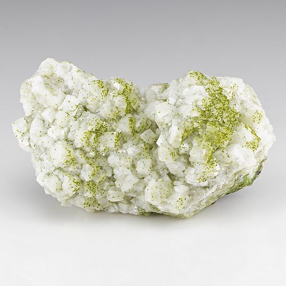 Green crystallized duftite across the top of this lustrous dolomite crystal matrix. In good condition.Data last checked on 11th Aug 2021 - specimen may no longer be available