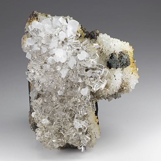 From a recent find in China, Winter 2020, glistening mostly gemmy lustrous prismatic crystals of colorless calcite to 1.0 cm in size across the top of this crystallized quartz matrix with octahedral fluorite crystals. In very good condition as seen. The calcite crystals exhibit a neat dimpled texture up on the crystal terminations.Data last checked on 11th Aug 2021 - specimen may no longer be available