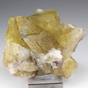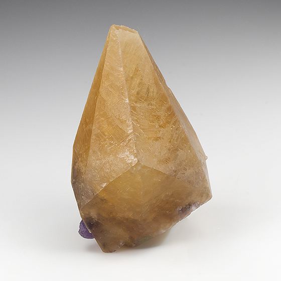 Very pretty amber colored mostly gemmy and lustrous scalenohedral calcite crystal with minor fluorite. This is complete all around and even crystallized naturally on the bottom. Very slight cleaved at the termination, this still in very good condition.Data last checked on 11th Aug 2021 - specimen may no longer be available