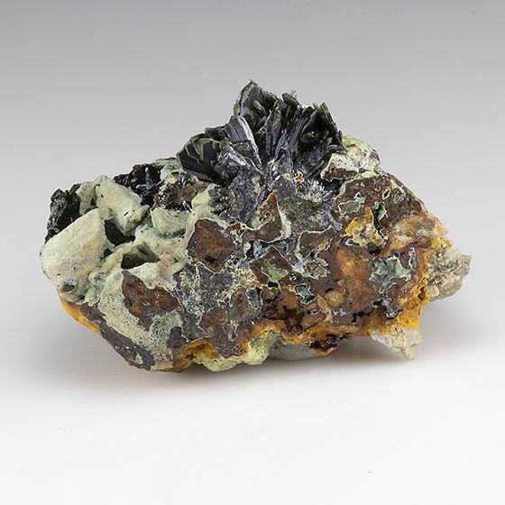 Olivenite with Malachite, Pseudomalachite, Goethite, Quartz