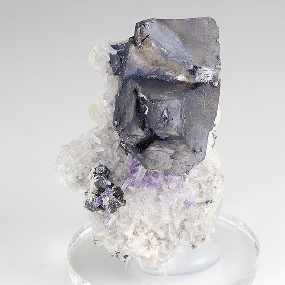 Lustrous crystals of galena in a cluster 1.8 cm in size on a crystalline quartz matrix with fluorite. In great condition. Very nice example for the species from this locality better known for its rhodochrosite specimens. Collected in October, 2003 from the number 3 raise.Data last checked on 11th Aug 2021 - specimen may no longer be available
