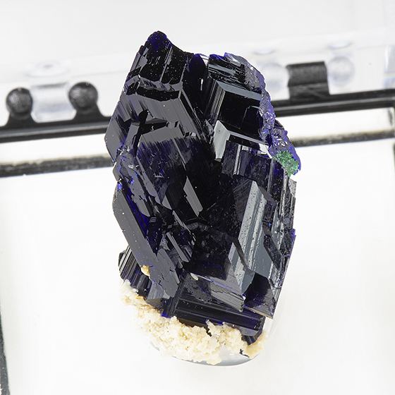 Beautiful cluster of lustrous bladed azurite crystals on a small amount of matrix. In super condition. Mounted for display in a perky box and will ship as shown.Data last checked on 11th Aug 2021 - specimen may no longer be available