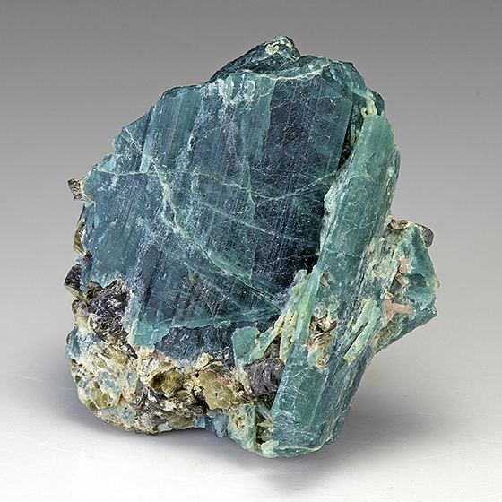 Very pretty blue translucent lustrous bladed crystals throughout this matrix. This is really fine for the species.Data last checked on 11th Aug 2021 - specimen may no longer be available