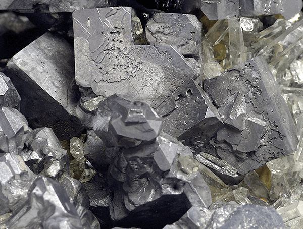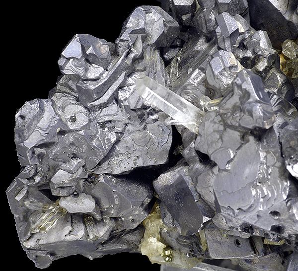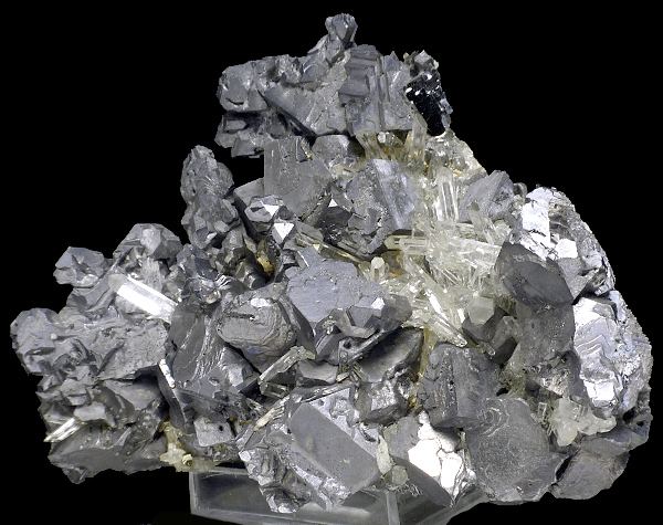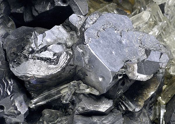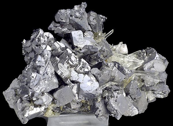 Very lustrous and sharply formed, silver crystals of galena with transparent and terminated quartz crystals.;Data last checked on 24th Jun 2021 - specimen may no longer be available