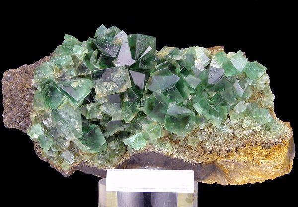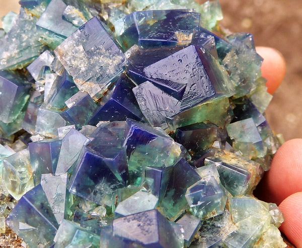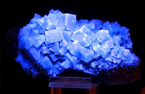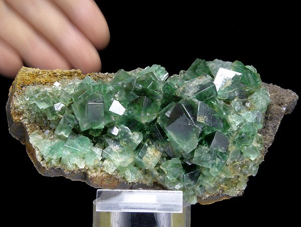 Well formed, lustrous, cubic and gemmy crystals of fluorite from world famous locality - Rogerley Mine. Lustrous fluorite cubes have great color - dark emerald green with a strong blue daylight fluorescence, and an even stronger purple-white fluorescence under long wave UV light. This amazing fluorite crystals change color in different lights - in natural light they are blue, in artificial light they are green. Crystals size up to 1.8 cm. Matrix stabilized, but not repeired.;;;Data last checked on 24th Jun 2021 - specimen may no longer be available