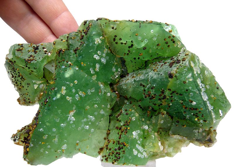 Green fluorite crystals with sparkly quartz. Good color. Good shape. Fluorescent under UV light.;Data last checked on 24th Jun 2021 - specimen may no longer be available