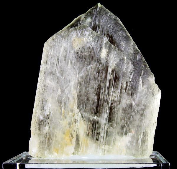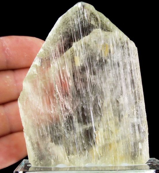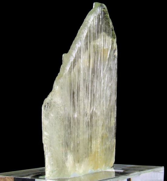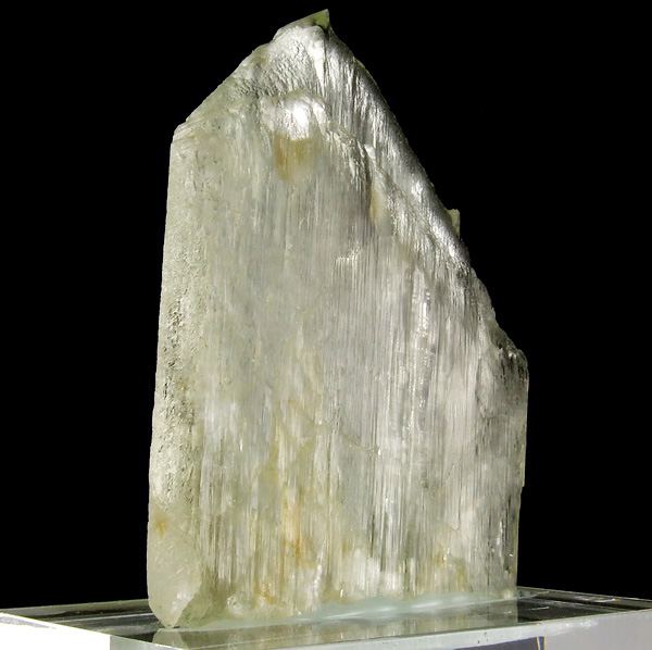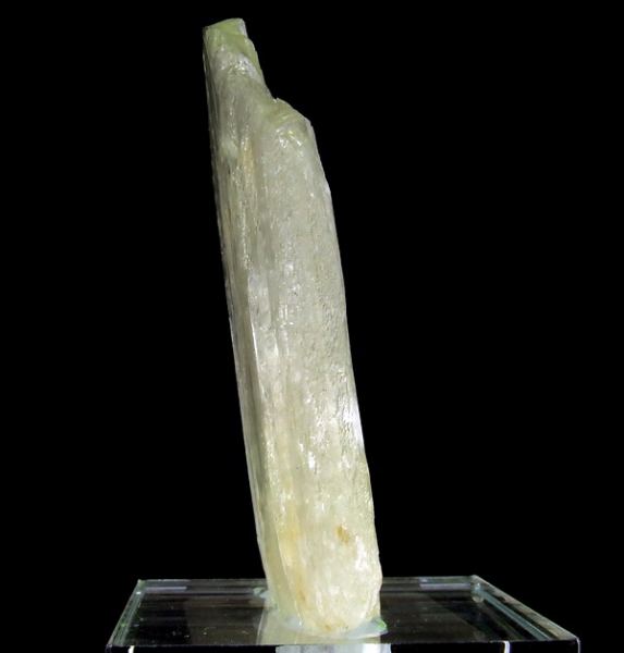 Crystal of gem spodumene – var. triphane from famous California pegmatites, USA. Nice green color. Specimen mounted to acrylic base.; Data last checked on 24th Jun 2021 - specimen may no longer be available