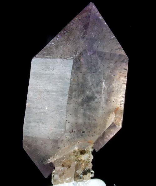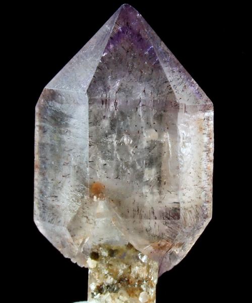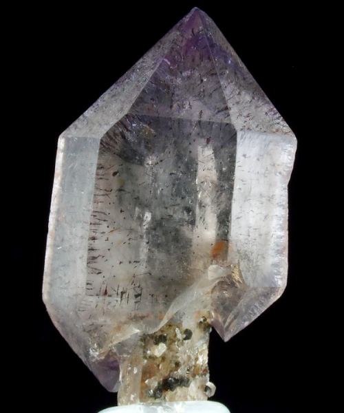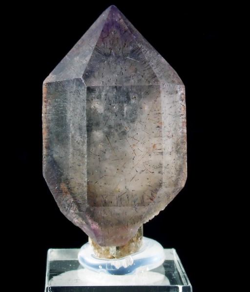 Well formed light color amethyst scepter with goethite needle inclusions. Specimen mounted to acrylic base.;Data last checked on 24th Jun 2021 - specimen may no longer be available