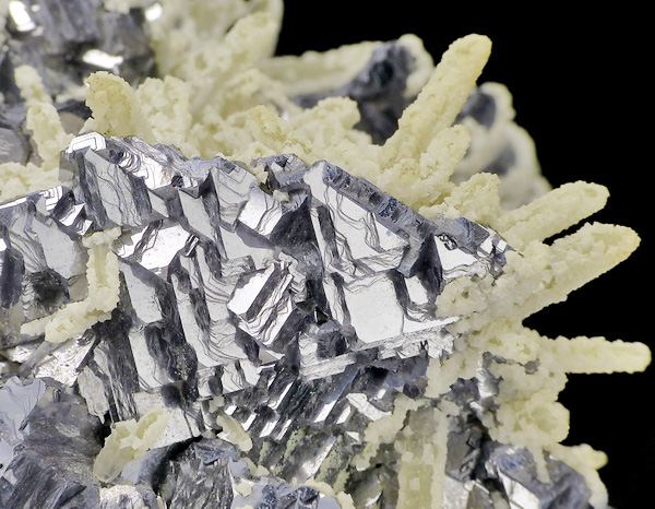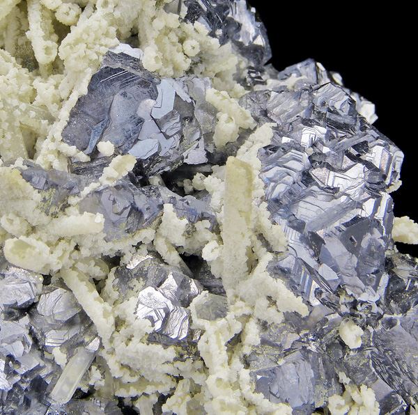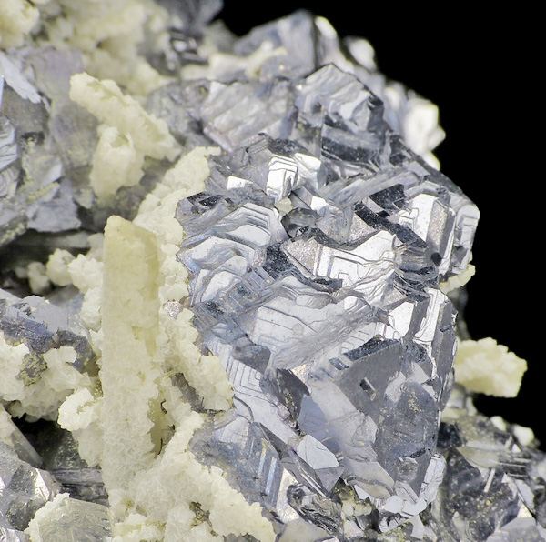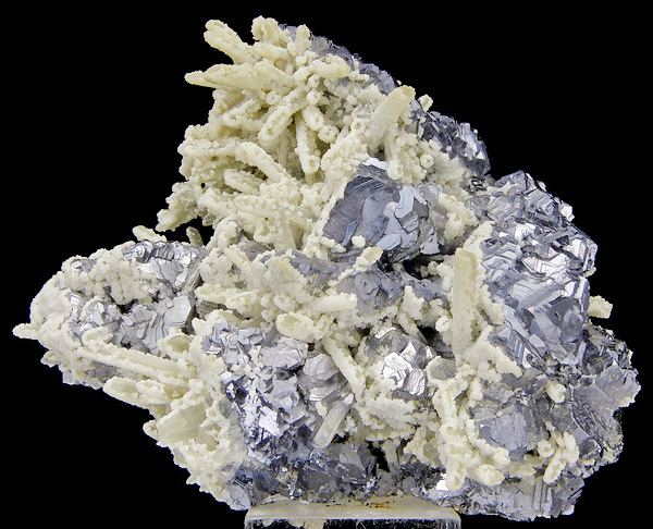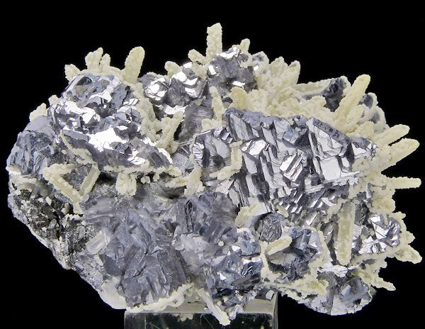 Cluster of very lustrous and sharply formed, silver galena spinel law twinned crystals with black sphalerite and quartz crystals partly covered by dolomite. Good contrast.;Data last checked on 24th Jun 2021 - specimen may no longer be available