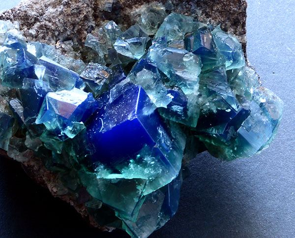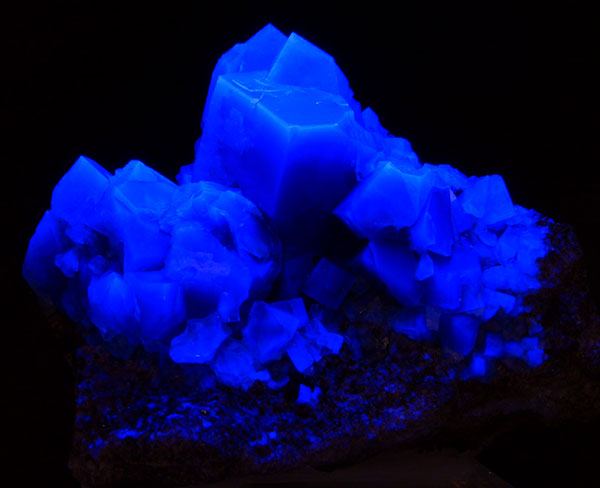 Fluorite specimen, from famous Rogerley Mine in UK, showing strong fluorescence in UV light and daylight. Emerald green in incandescent light, blue-green in daylight and electric blue in UV light. Some dings, good luster.Data last checked on 24th Jun 2021 - specimen may no longer be available