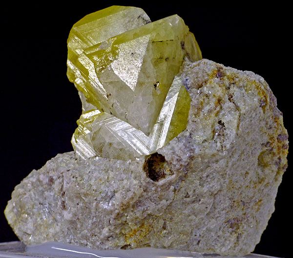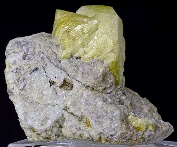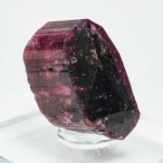 Lustrous, very well formed rhodizite crystal on matrix. Good color. Specimen mounted to acrylic base. Some chips.;Data last checked on 24th Jun 2021 - specimen may no longer be available