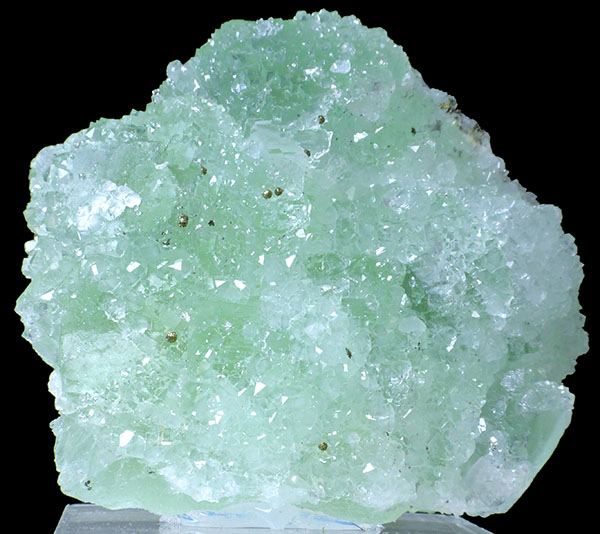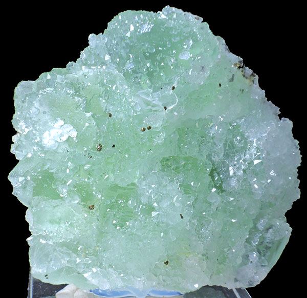 Aesthetic, green, translucent fluorite. Crystal covered with sparkly quartz. Difficult to photograph, better in person. Specimen mounted on acrylic base.;Data last checked on 24th Jun 2021 - specimen may no longer be available