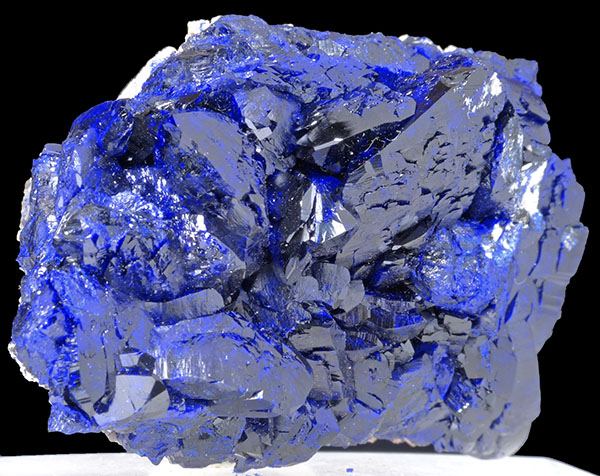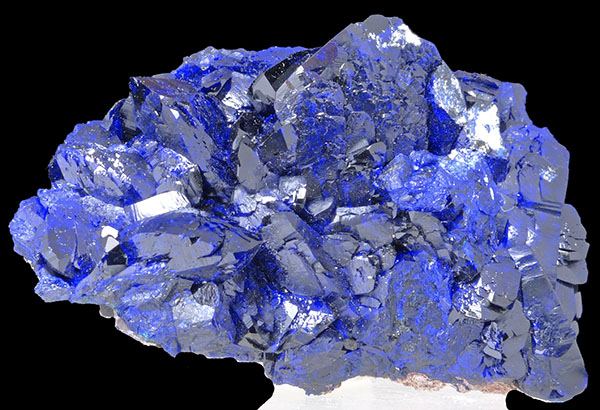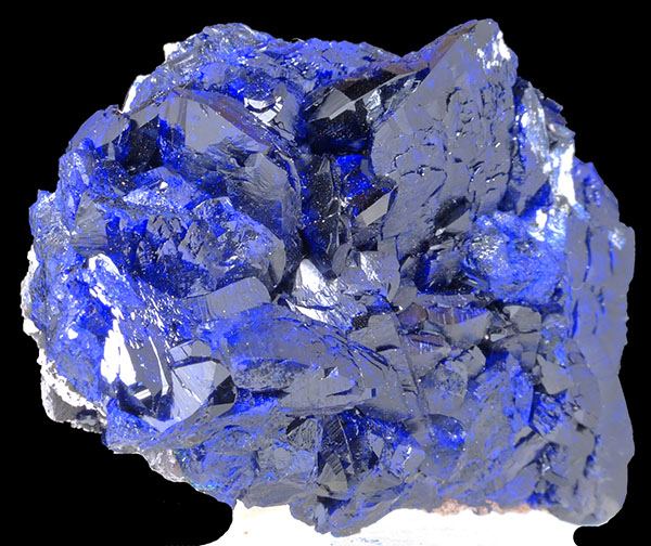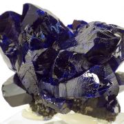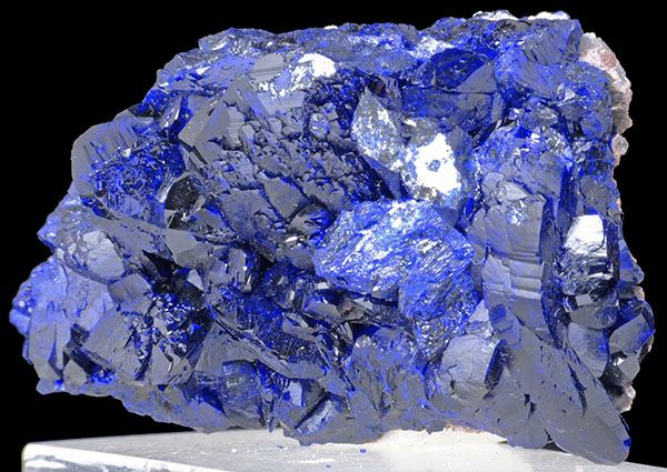 Aesthetic, very lustrous, sharply formed crystals of azurite in good blue color. Some damages, mostly on the back. Good quality!;Data last checked on 24th Jun 2021 - specimen may no longer be available