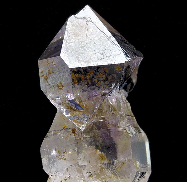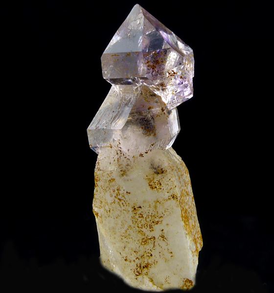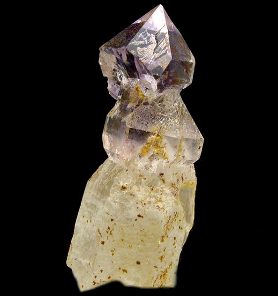 Cool specimen of sharp, lustrous multiple amethyst scepter on dull quartz stem. Some chips.;Data last checked on 24th Jun 2021 - specimen may no longer be available