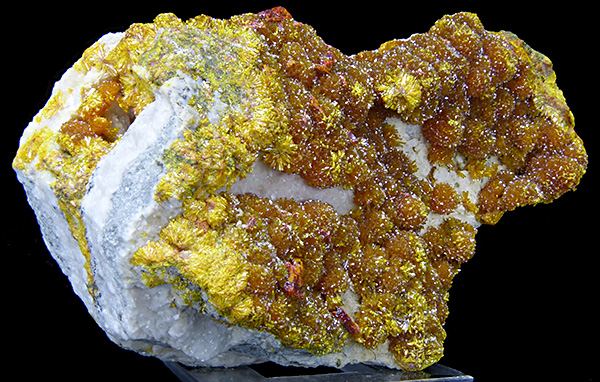 Aesthetic specimen of orpiment with realgar on the matrix. Nice colors!Data last checked on 24th Jun 2021 - specimen may no longer be available