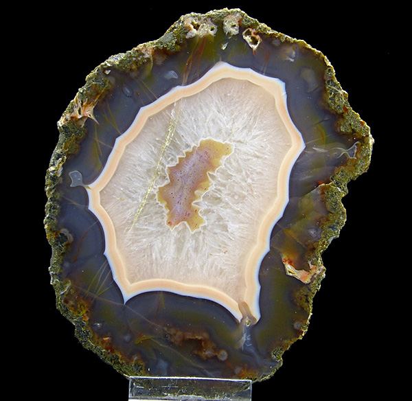 Colorful, translucent slab of agate from Morocco, polished on one side. ;Data last checked on 24th Jun 2021 - specimen may no longer be available