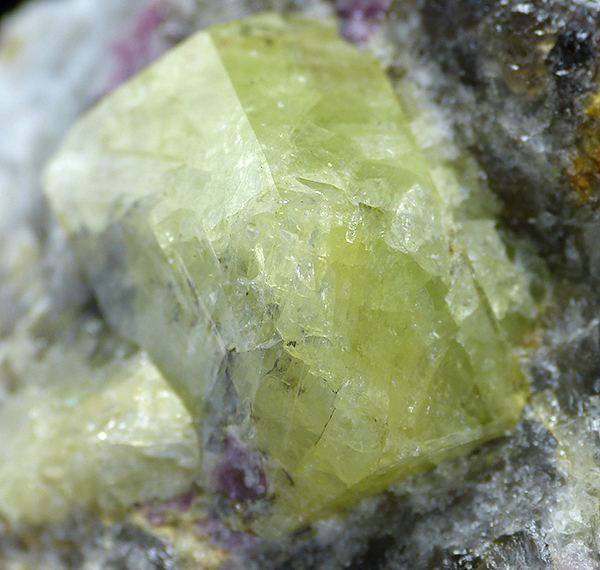 Lustrous crystal of rhodizite in light green color on matrix. ;Data last checked on 24th Jun 2021 - specimen may no longer be available