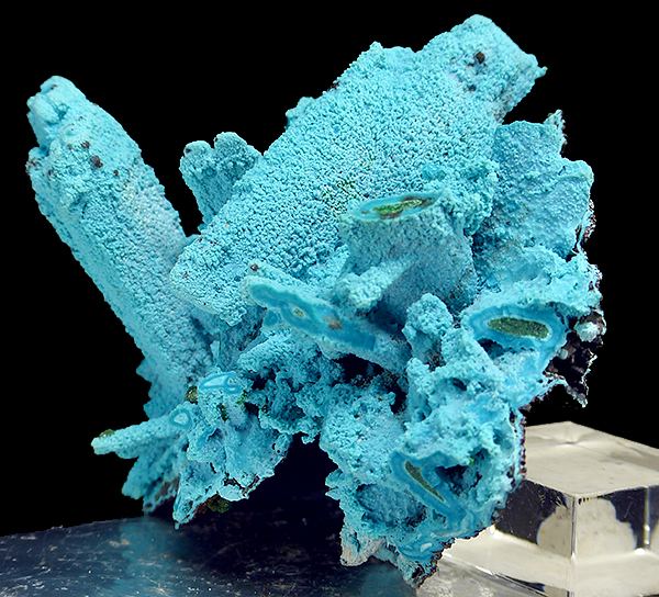 CHRYSOCOLLA psm after MALACHITE psm after AZURITE with QUARTZ - Tenke-Fungurume, Lualaba, DR Congo