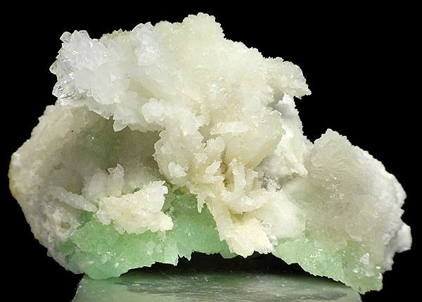 Nice specimen of green adamite combined with aragonite, from Greece. Classic for this classic locality. Aesthetic.;Data last checked on 24th Jun 2021 - specimen may no longer be available