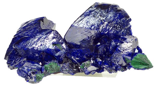 Sharp and lustrous crystals of azurite in deep, electric blue color combined with green malachite from Mexico. Top for the locality.;Data last checked on 24th Jun 2021 - specimen may no longer be available