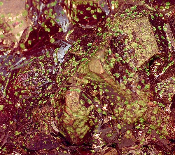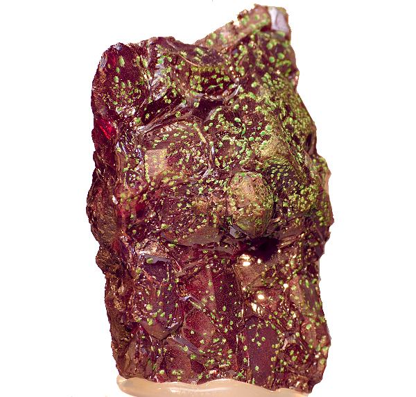 Great specimen of big cuprite cristals with some malachite coating. Nice color in strong light. ;; Data last checked on 24th Jun 2021 - specimen may no longer be available