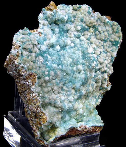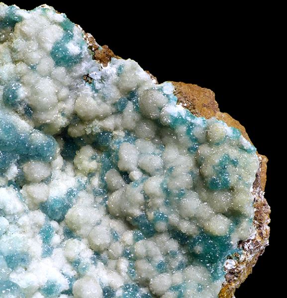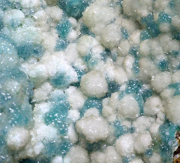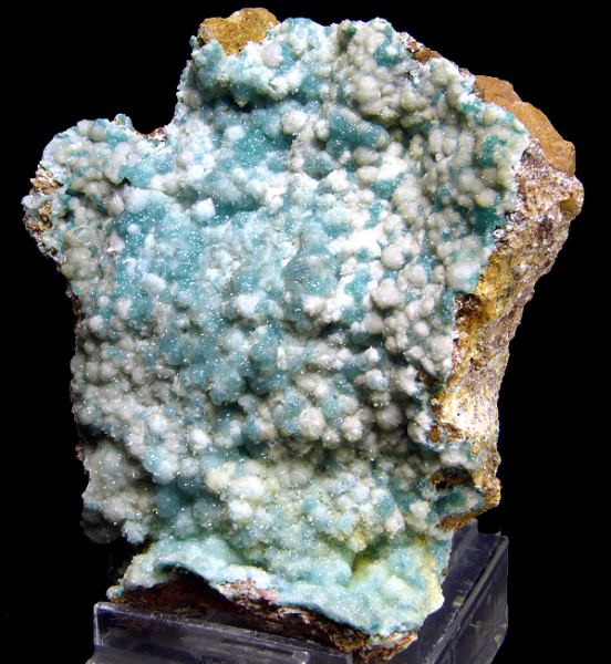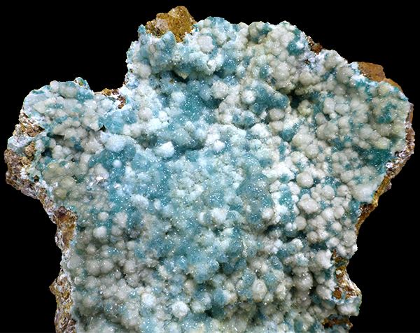 Lustrous adamite in good, blue-green color combined with white calcite. Good for the locality.;Data last checked on 24th Jun 2021 - specimen may no longer be available