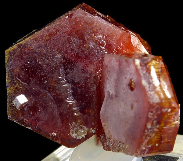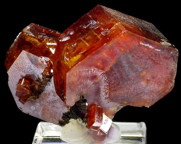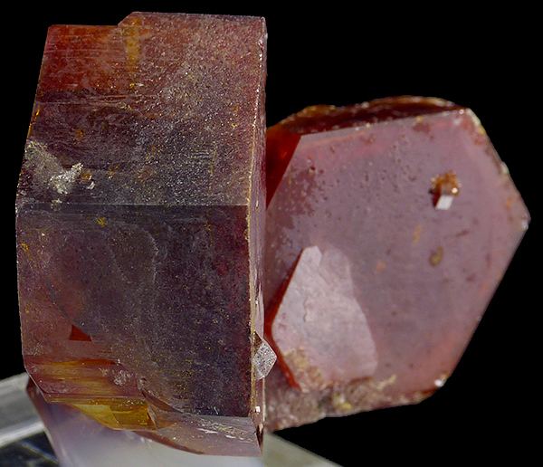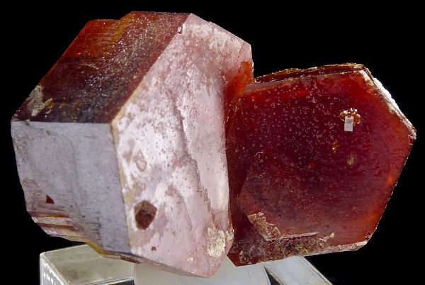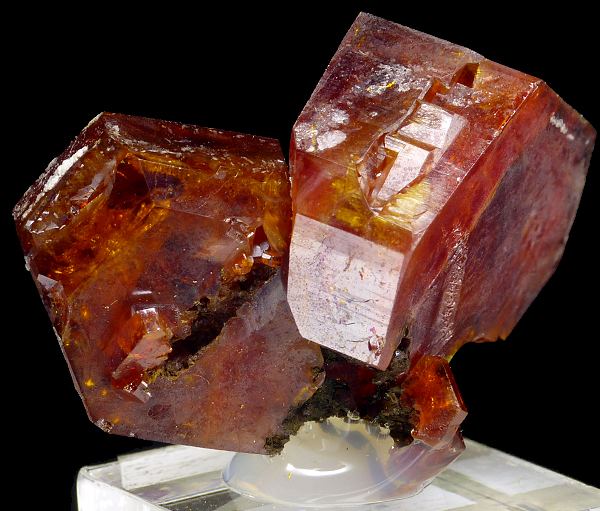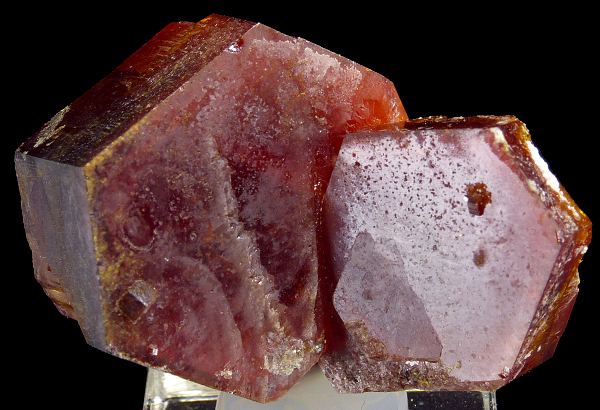 Aesthetic cluster of sharp and intensively red crystals of vanadinite. Satin luster. Mounted on acrylic base.;Data last checked on 24th Jun 2021 - specimen may no longer be available