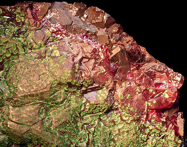 Nice specimen of big cuprite cristals with some malachite coating. Nice color in strong light. ;; Data last checked on 24th Jun 2021 - specimen may no longer be available