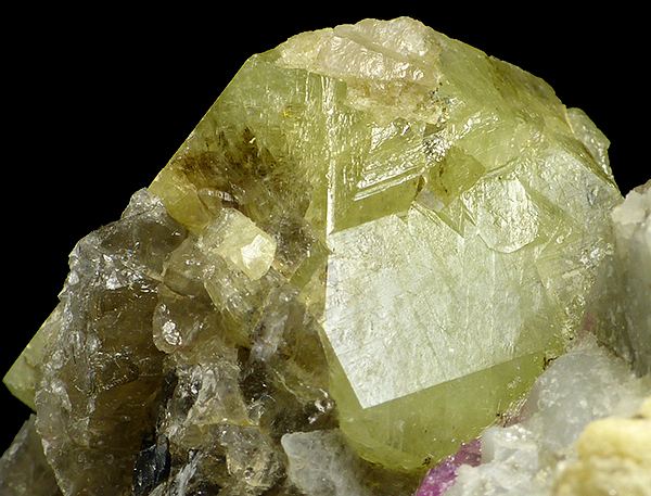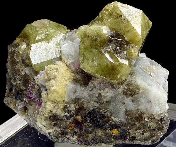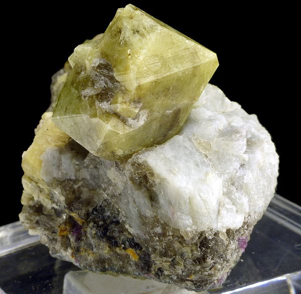 Multiple, well formed and lustrous crystals of rhodizite on matrix. Main crystal is twinned. The biggest crystal size is: 2.2 x 2.0;Data last checked on 24th Jun 2021 - specimen may no longer be available