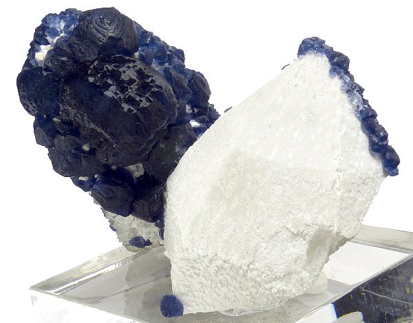 Super aesthetic specimen of white quartz crystals covered by contrastive deep blue fluorite. Great contrast and color.;Data last checked on 24th Jun 2021 - specimen may no longer be available