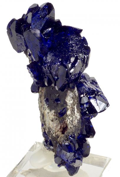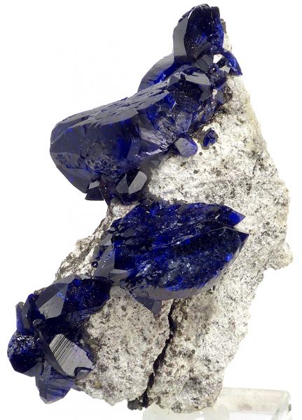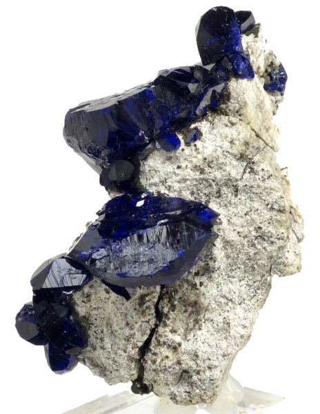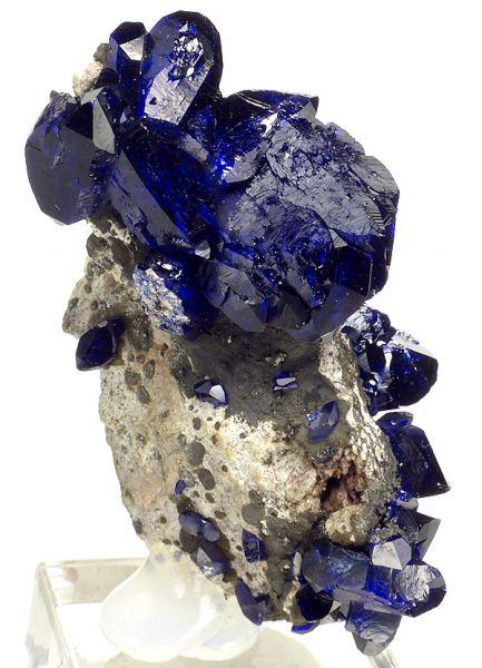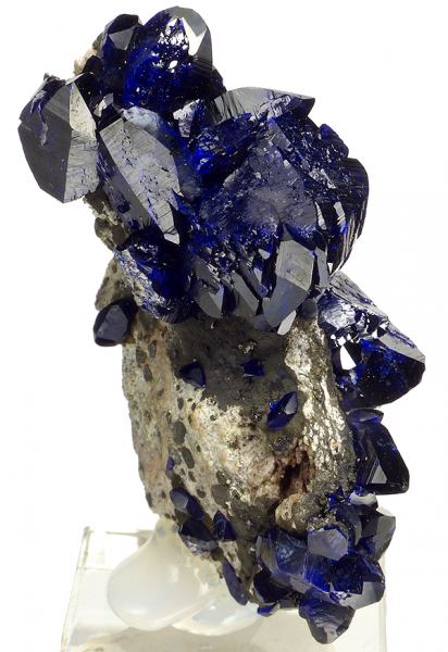 Aesthetic specimen of sharp, well formed and very lustrous crystals of azurite on contrastive matrix from a world known locality. Deep blue color. Great contrast. ;Data last checked on 24th Jun 2021 - specimen may no longer be available