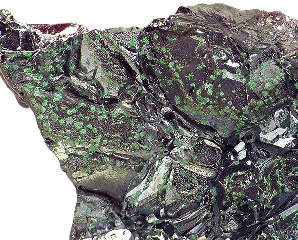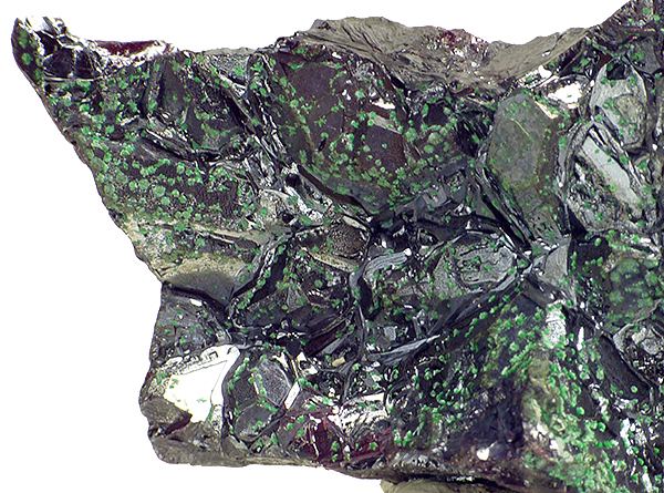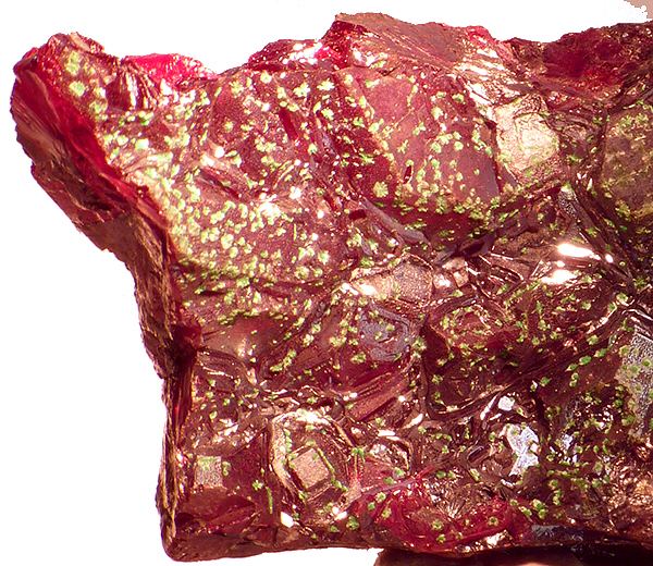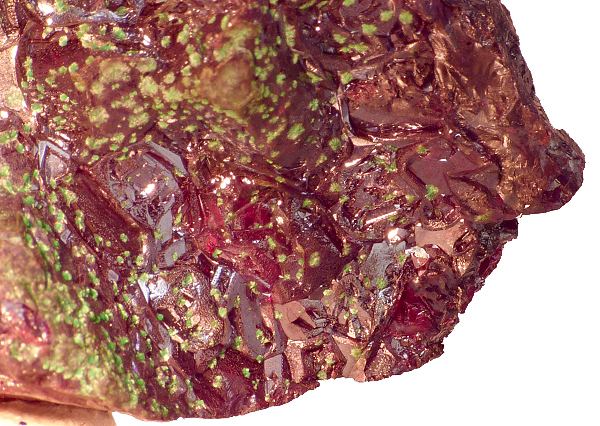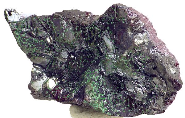 Great specimen of big cuprite crystals with some malachite coating. Good color in strong light. ;; Data last checked on 24th Jun 2021 - specimen may no longer be available