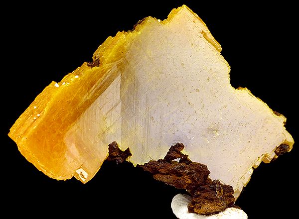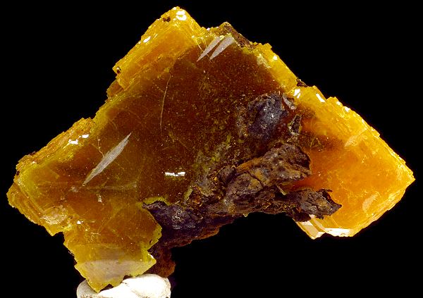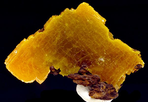 Good, lustrous wulfenite crystal in good orange color from Mexico. Great, intensive color and luster.Data last checked on 24th Jun 2021 - specimen may no longer be available