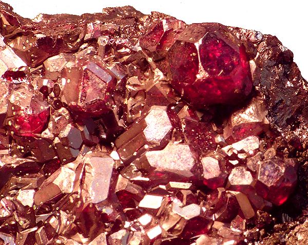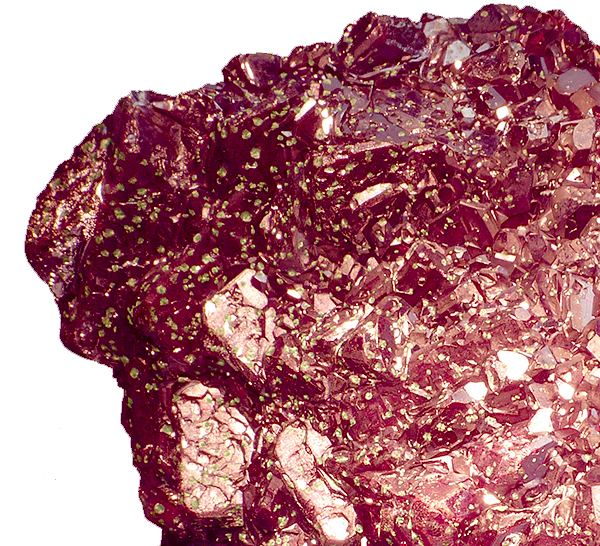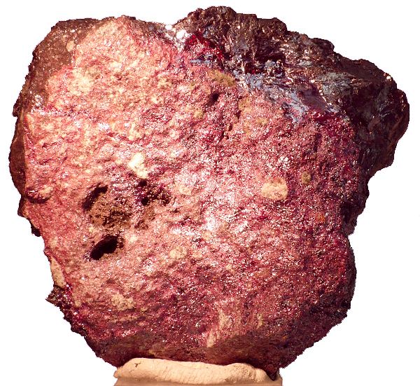 Great specimen of big, translucent cuprite crystal with some malachite coating. Nice color in strong light. ;; Data last checked on 24th Jun 2021 - specimen may no longer be available