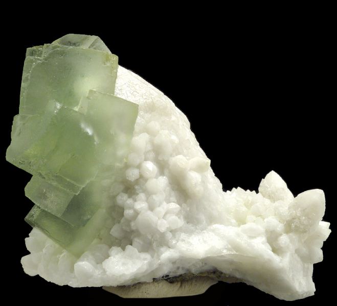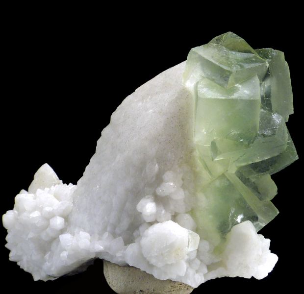 Aesthetic combination of light green fluorite crystals combined with white quartz. Great contrast and good colors. Fluorescent under UV light.;Data last checked on 24th Jun 2021 - specimen may no longer be available