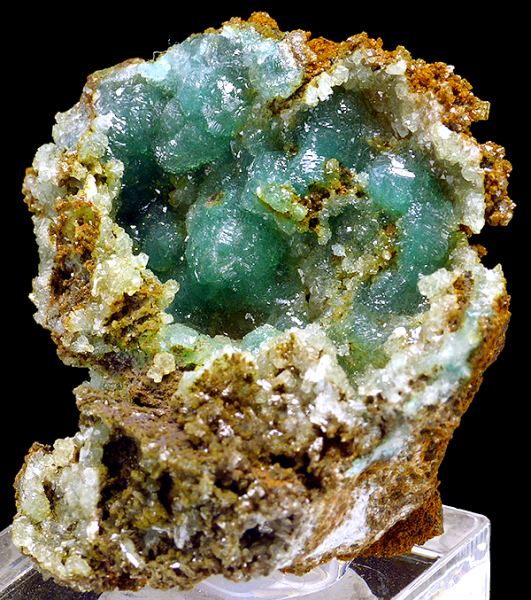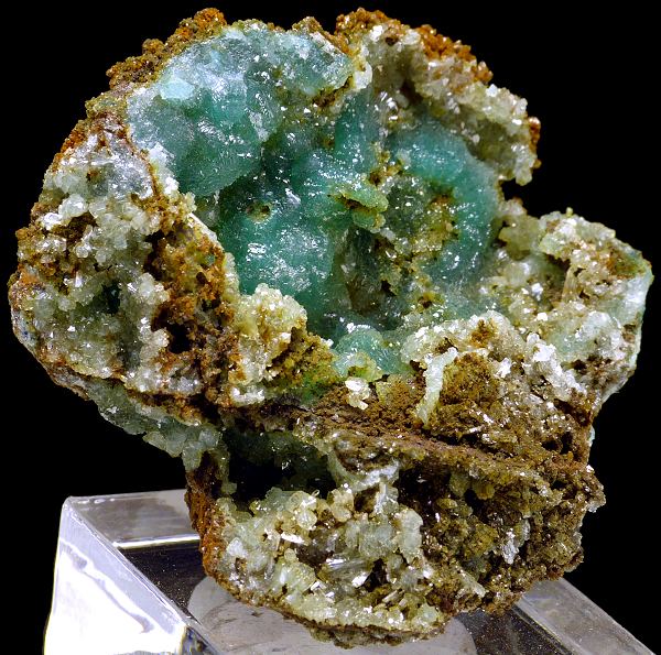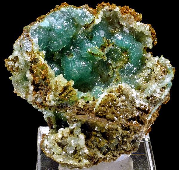 Cute specimen of lustrous adamite in green-blueish color. Rare and good for the location! Mounted to acrylic base.;Data last checked on 24th Jun 2021 - specimen may no longer be available