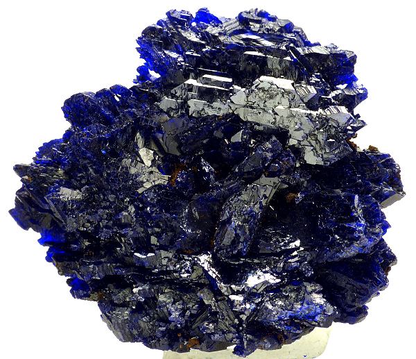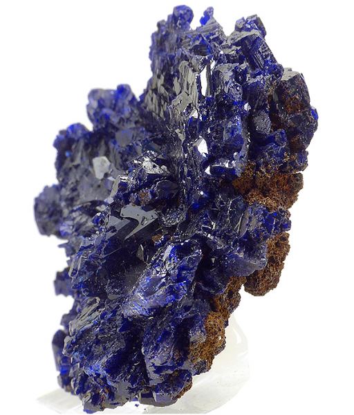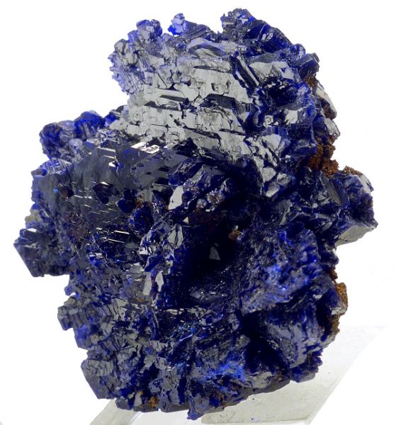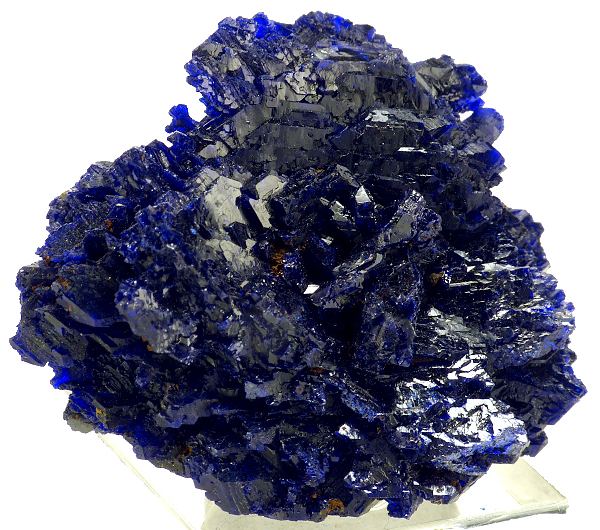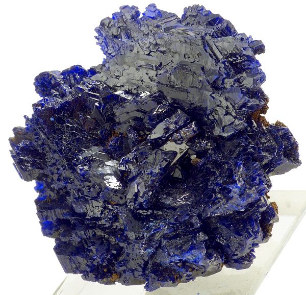 Specimen of lustrous azurite in very good, dark blue color. Great, rose-like shape. Well crystallized. Specimen mounted on acrylic base.;; Data last checked on 24th Jun 2021 - specimen may no longer be available