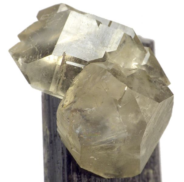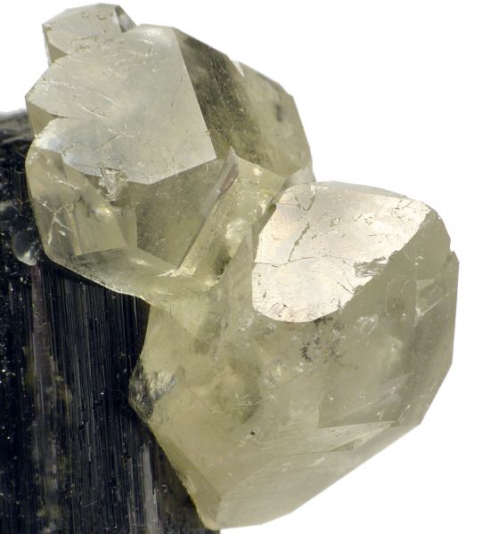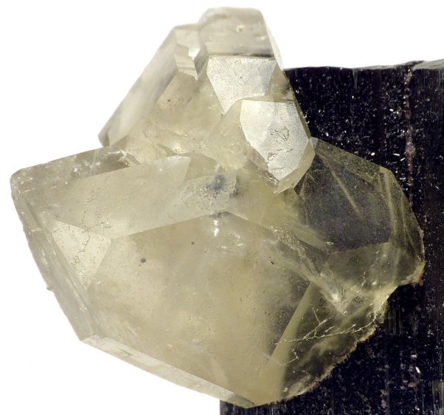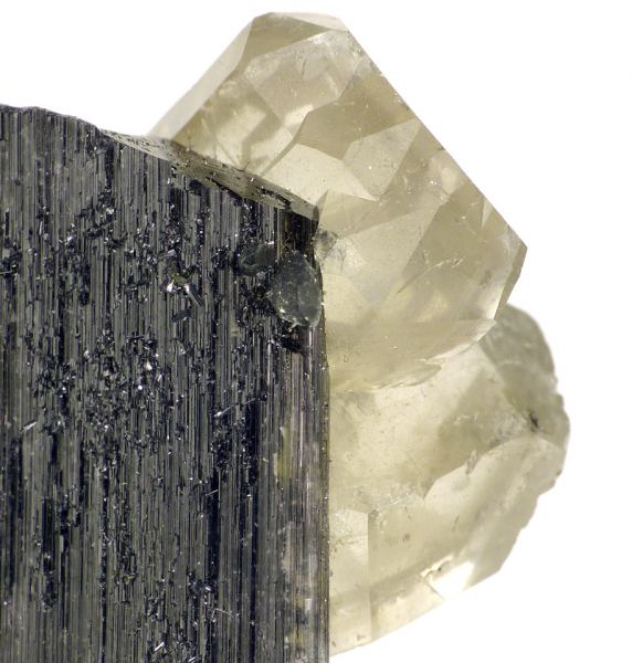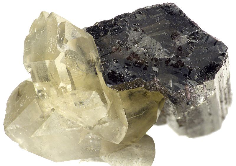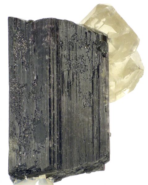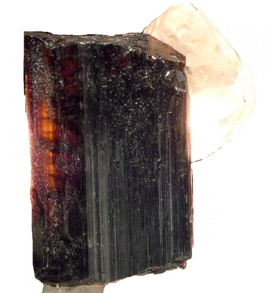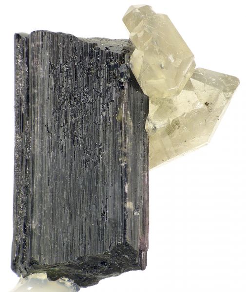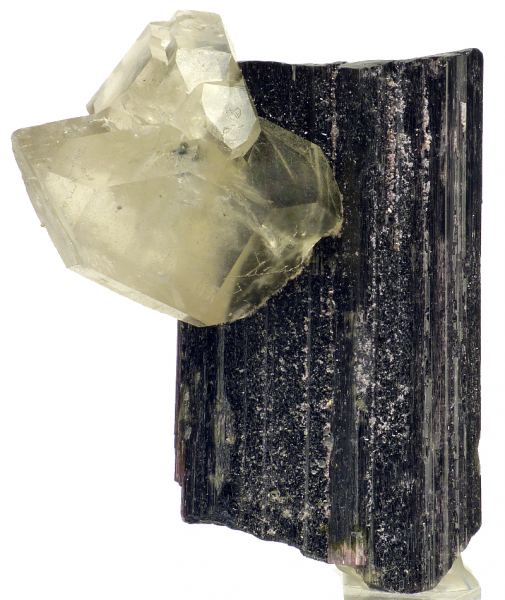 Lustrous, terminated crystal of tourmaline with clear quartz crystals.;; Data last checked on 24th Jun 2021 - specimen may no longer be available