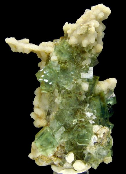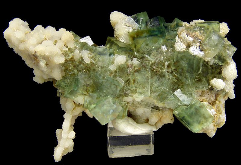 Aesthetic specimen of green, gemmy and lustrous fluorite crystals combined with quartz. Great form. Fluorescent under UV light.Data last checked on 24th Jun 2021 - specimen may no longer be available
