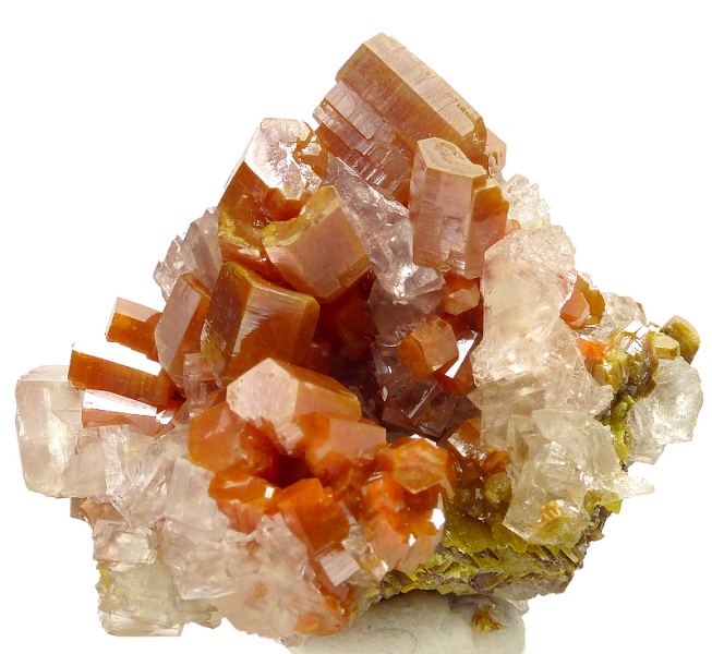 Cool specimen of sharp and lustrous vanadinite crystals in reddish color with contrastive calcite from Mexico. Good luster and contrast.;Data last checked on 24th Jun 2021 - specimen may no longer be available