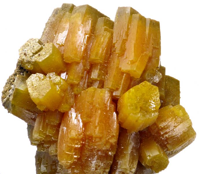 Classic orange parallel growth pyromorphite crystals, from famous Bunker Hill in US. Good color and shape.Data last checked on 24th Jun 2021 - specimen may no longer be available