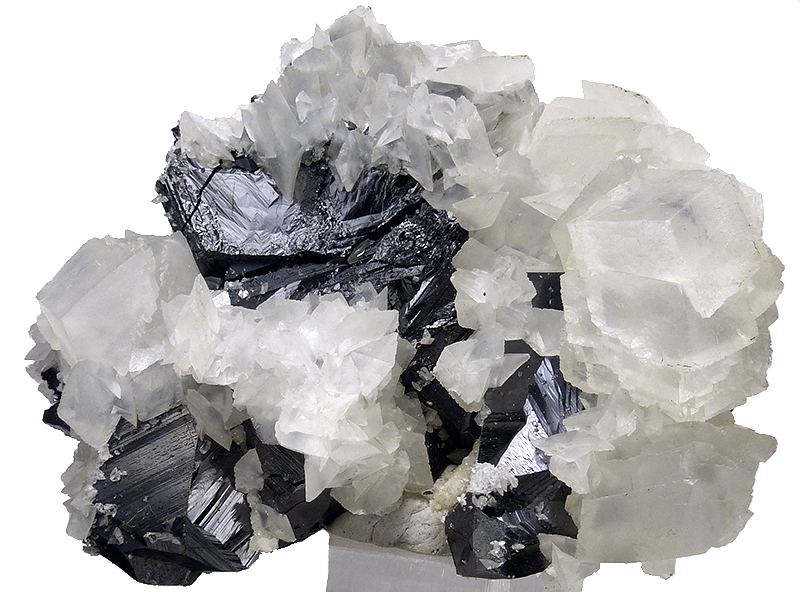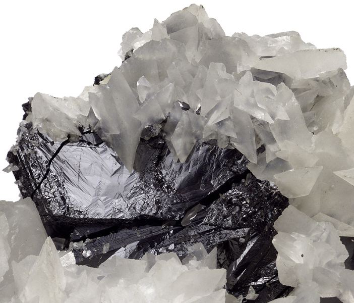 Good crystals of calcite on very lustrous sphalerite. Great luster and contrast. Crack in sphalerite matrix.;Data last checked on 24th Jun 2021 - specimen may no longer be available