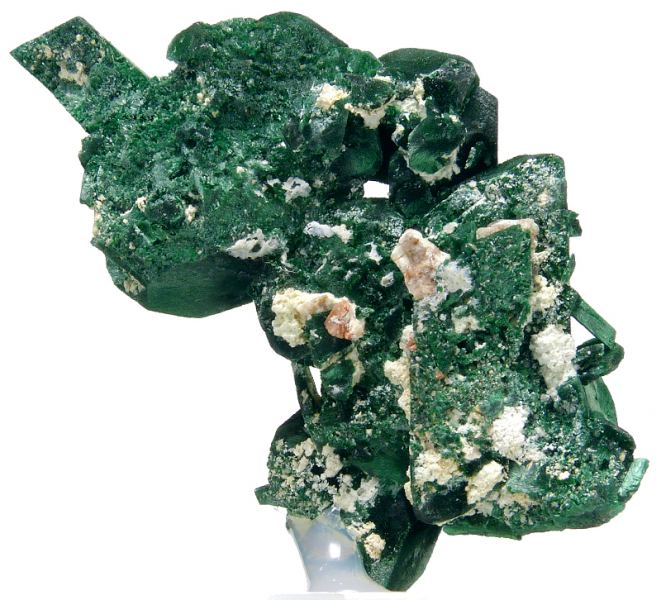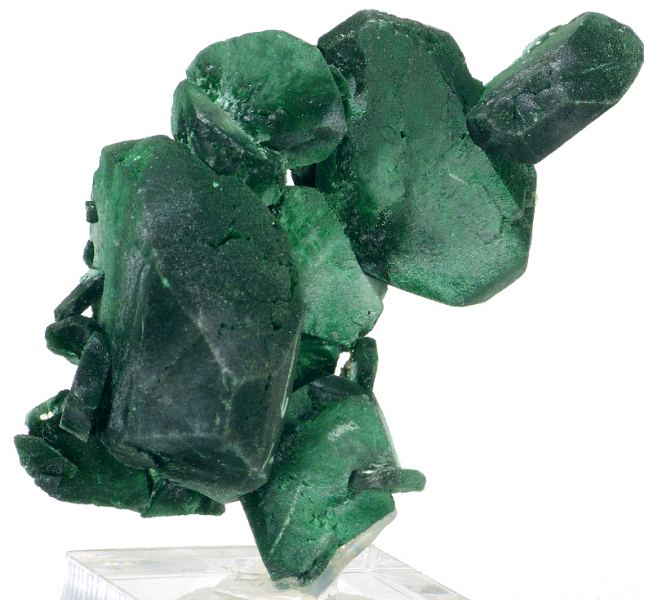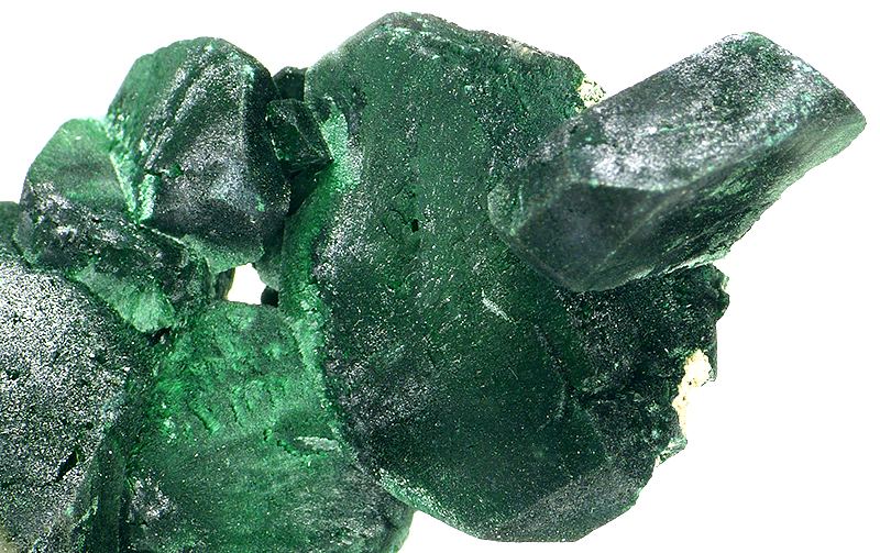 Malachite pseudomorphs after azurite with sharp crystals. Good color and velvet luster.;Data last checked on 24th Jun 2021 - specimen may no longer be available
