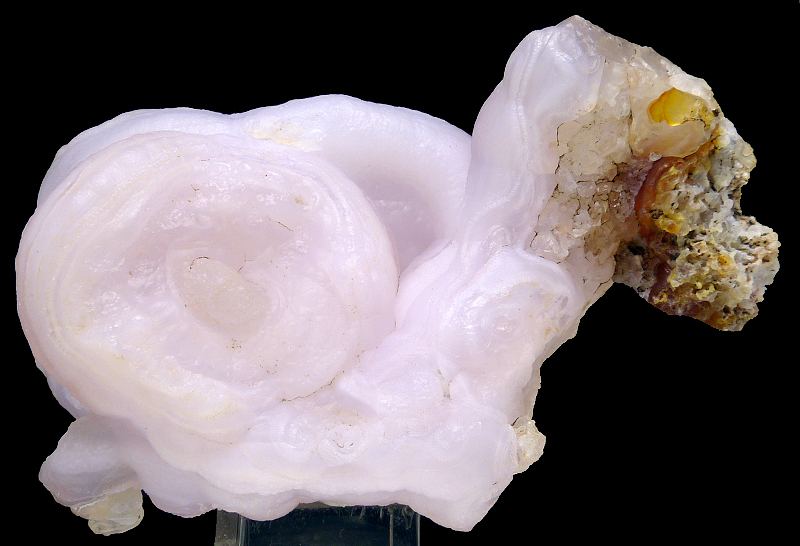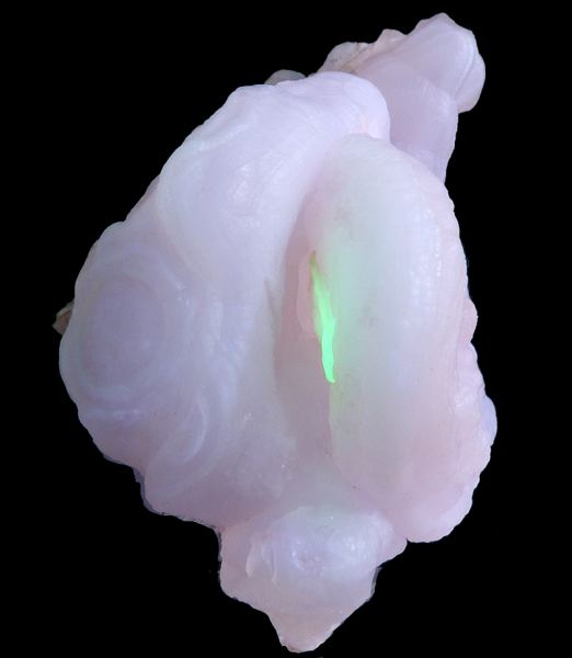 Specimen of pink chalcedony from USA. Good form. Partly fluorescent (neon green) under UV light.Data last checked on 24th Jun 2021 - specimen may no longer be available